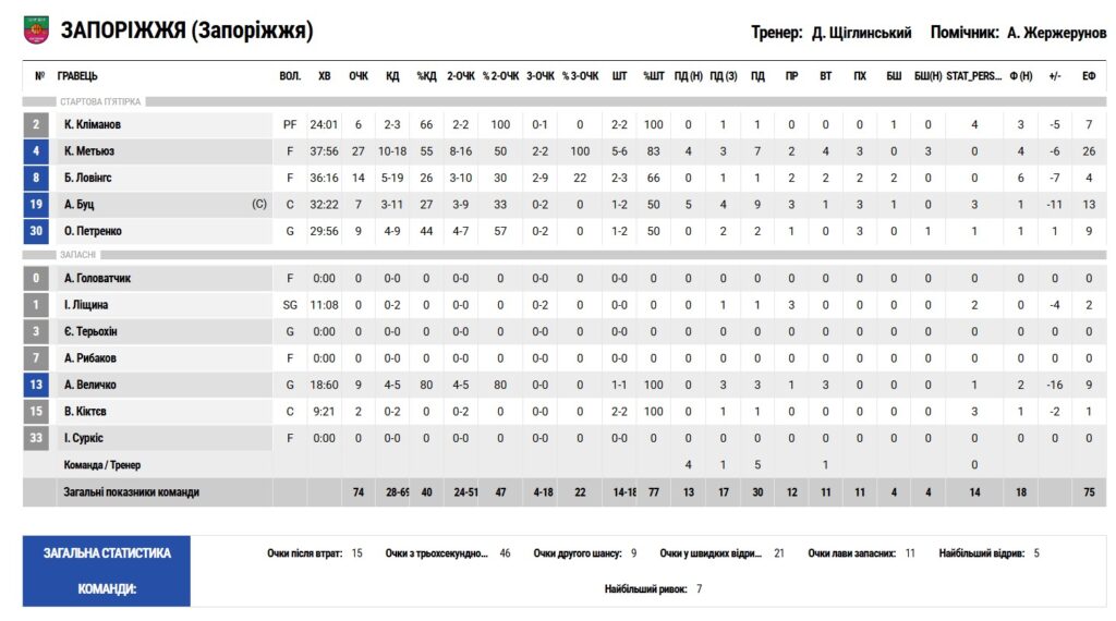 “Запоріжжя” — “Київ-Баскет” 74:84 (22:24, 19:18, 19:21, 14:21)