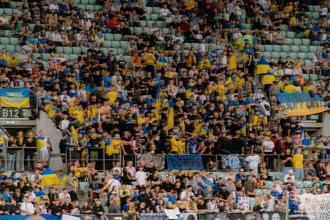 Фанати підтримували збірну України в матчі проти Франції на Тарчинськи Арені у польському Вроцлаві.
