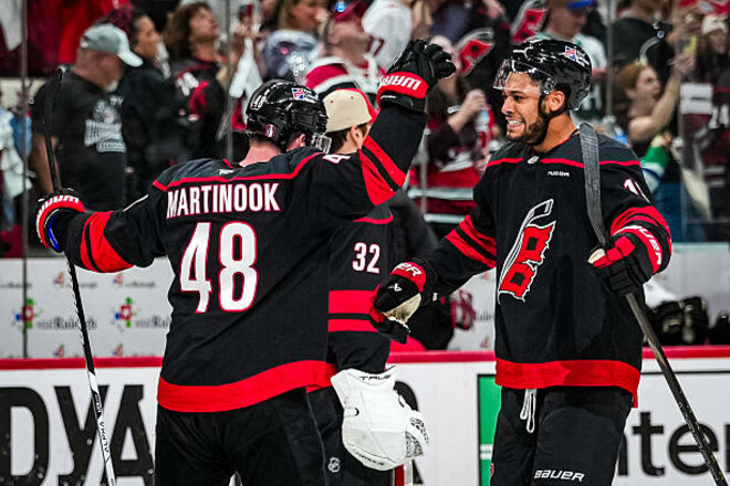 Аналогічний рахунок у серії Кароліни і Оттави. Урагани у напруженому матчі лише у другому овертаймі обіграли Сенаторів 3:2, вирішальну шайбу закинув Джордан Мартінук.