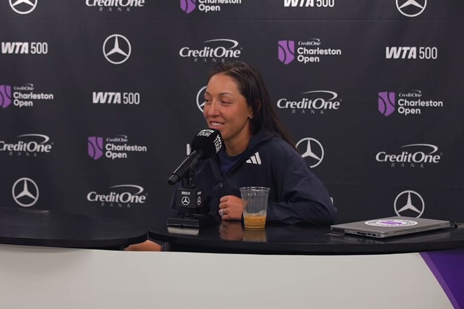 П’ята ракетка світу Джессіка Пегула поспілкувалася з журналістами після перемоги над Івою Йовіч у півфіналі WTA 500 у Чарльстоні – 5 квітня Пегула побореться за трофей з Юлією Стародубцевою: