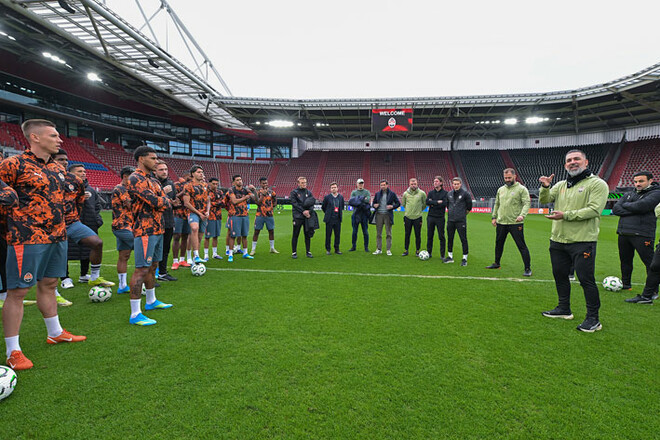 Гравці Шахтаря випробували поле АЗ Стадіон ввечері 15 квітня, напередодні гостьового поєдинку Ліги конференцій УЄФА 1/4 фіналу з нідерландським АЗ Алкмар,